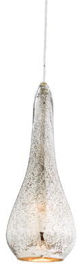 Teardrop shaped pendant of translucent antique mercury glass provides ambient light. Use as a single fixture or arrange with others in a linear arrangement or clustered together at varying heights.
