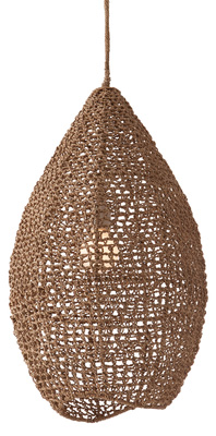 Hand woven sea grass in its natural coloration forms a graceful teardrop shade. A single bulb floats inside its own hive. Shown with a 4″ frosted globe bulb.